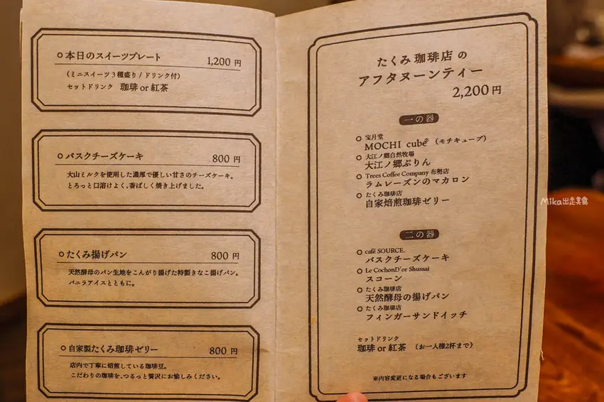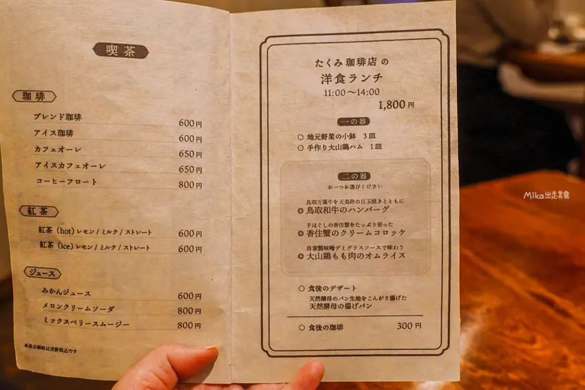 官網:たくみ珈琲店 | 鳥取の民藝と食を愉しむ飲食店 | 菜單 | たくみ珈琲店