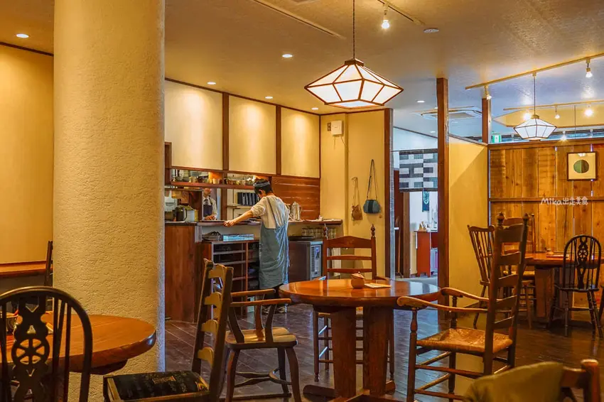 午餐時段(11:00~14:00)提供的套餐非常受歡迎,每道料理約 1800 日圓。套餐內容誠意十足,包含了使用在地蔬菜製作的三道精緻小缽前菜,以及手工製作的大山雞火腿,健康又開胃。主餐後的甜點則是獨家的天然酵母油炸麵包。菜單簡單明瞭地手寫在門口的板子上,充滿了可愛的溫度。雖然是平日中午,但店內依然人潮滿滿,可見這間結合藝術與美食的咖啡店在當地的高人氣,建議提早前往以免久候。