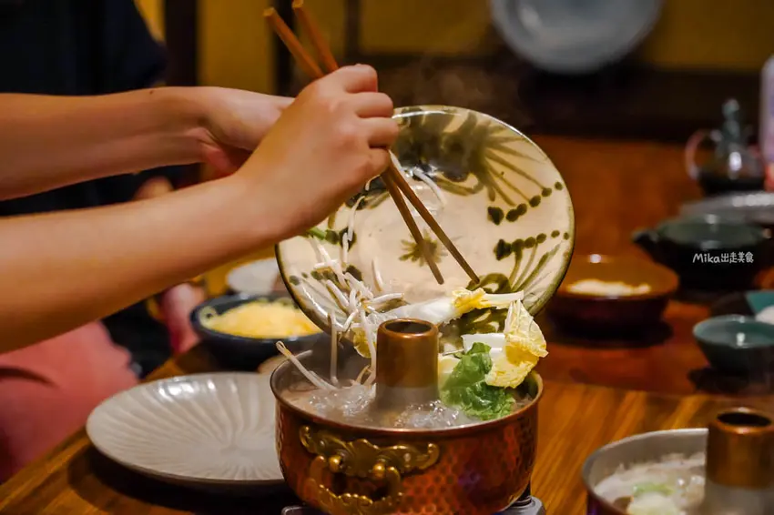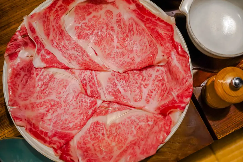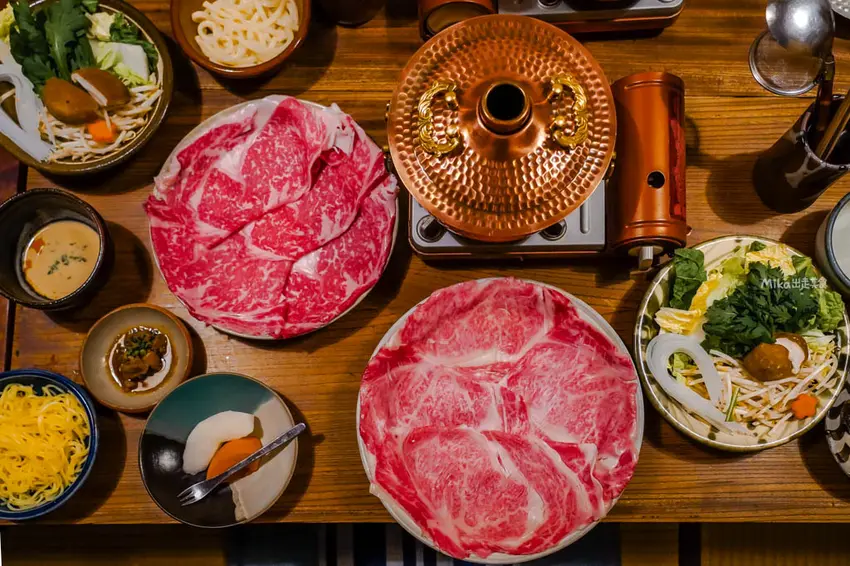 來到這裡絕對要點招牌的「鳥取和牛壽喜燒鍋」。套餐肉品份量約 170 至 180 克,端上桌的頂級鳥取和牛,那如大理石般分布均勻的油花簡直美得像藝術品。不同於一般常見的清淡昆布湯底,這裡使用的是獨門的味噌湯頭,濃郁卻不搶味。將大片的和牛在銅鍋中輕涮幾秒,肉質呈現粉嫩色澤時即可享用,沾上店家特製的濃郁胡麻醬,入口即化的鮮甜口感與芝麻香氣交織,搭配鮮甜的在地蔬菜,絕對是令人難忘的美味。