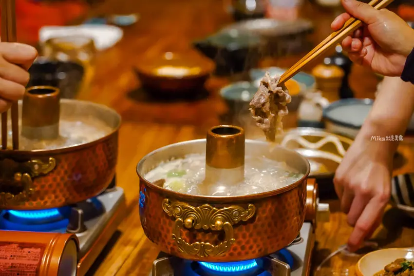 這家店的歷史背景相當深厚,據說老闆早年對中國火鍋產生濃厚興趣,將其概念帶回日本鳥取後,便開設了這間被譽為日本第一家的和牛涮涮鍋店。餐廳建築本身就是一棟充滿韻味的古民宅,保留了傳統的日式風格。走進店內,低矮的桌椅配置考驗著現代人的膝蓋,卻也還原了最道地的昭和風情。桌上擺放著小巧可愛的銅製火鍋,這種充滿懷舊感的器皿,不僅導熱效果好,更讓用餐過程增添了一份暖心的親切感。