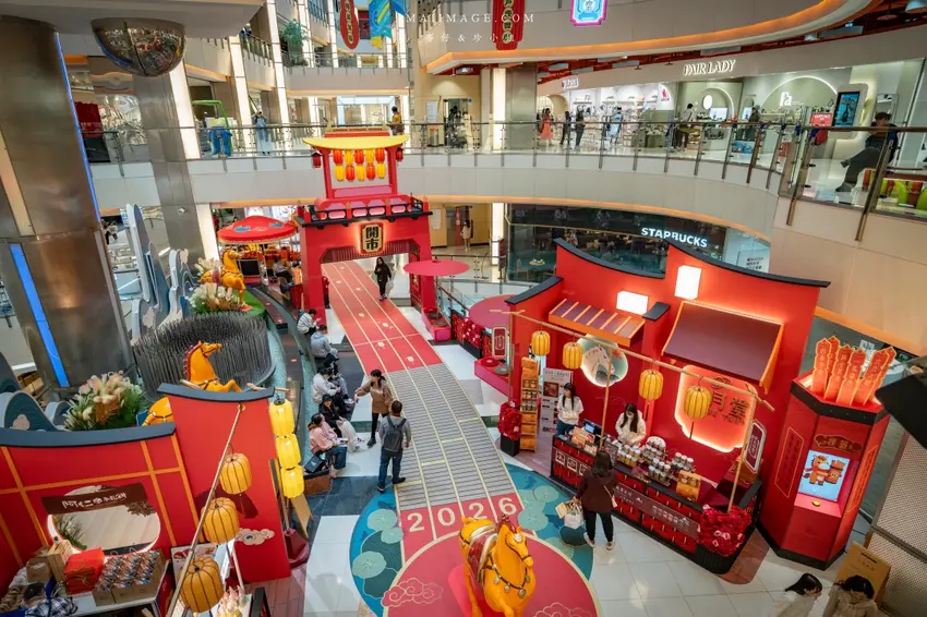 桃園大江購物中心 2026 賀歲裝置登場!唐代市集與萬馬奔騰造景超好拍,必吃檀島香港餐廳圍爐大餐,全年免費停車。