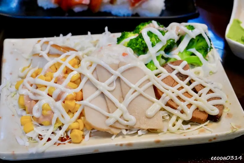這盤也是誠意滿滿,青花菜、玉米、還有魚卵沙拉、代鮑、鯊魚煙等,一盤可以吃到多樣。