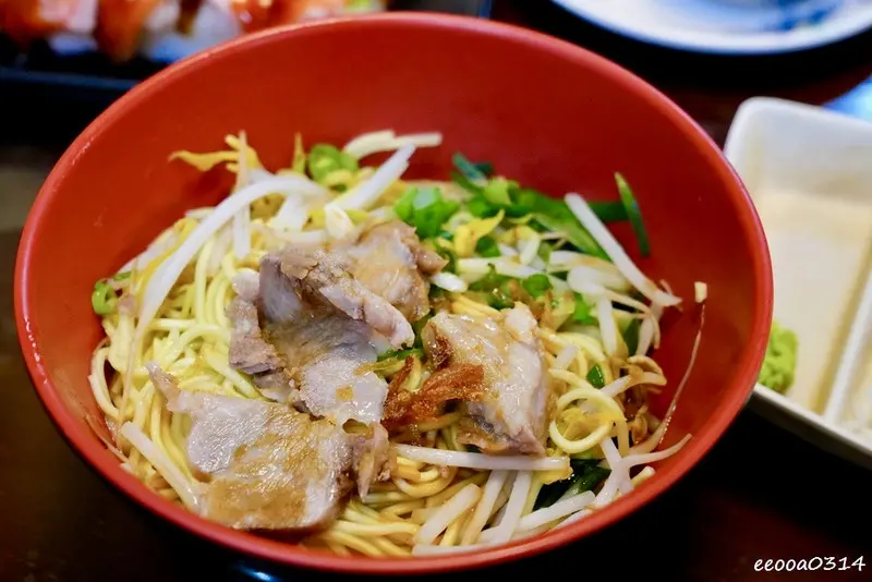 別家壽司店找不到這一味!簡單的黃乾麵淋上醬汁,配上兩片瘦肉,就是最道地的台灣味。
