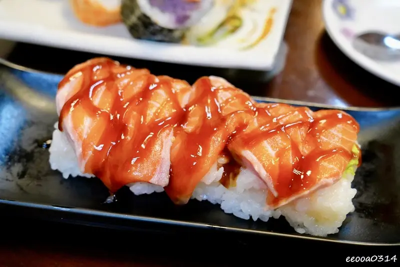 愛吃鮭魚的朋友不能錯過,鮭魚生魚片還細心地夾了檸檬片,吃起來更清爽;而鮭魚手握生魚飯則淋上了鹹甜的醬油膏,魚肉肥美滑順,醋飯紮實,是那種傳統台式壽司的飽足感!