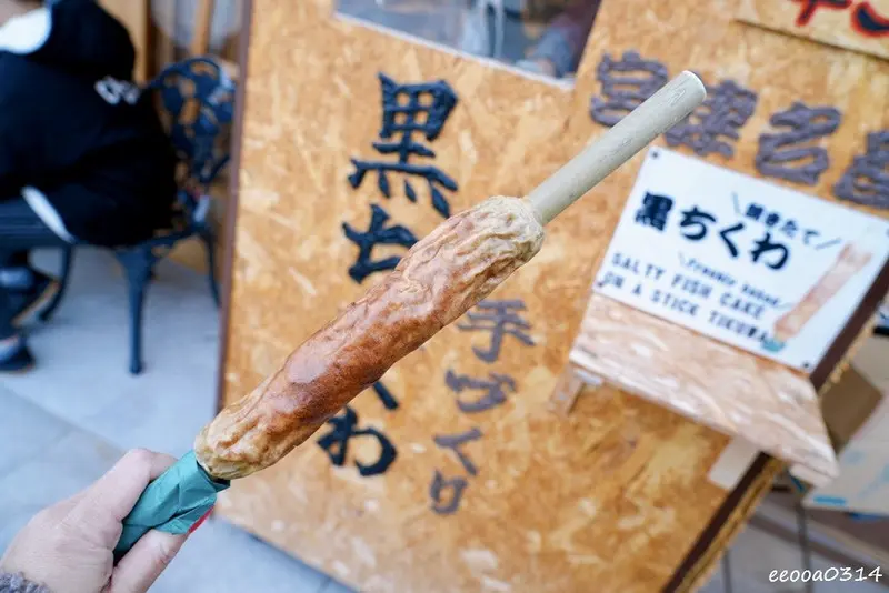 那天進入寺廟參拜前,我們在寺廟前商店先被香氣誘惑,買了一串香噴噴的烤黑輪,熱騰騰的魚漿香氣,也讓這趟旅行更加幸福!