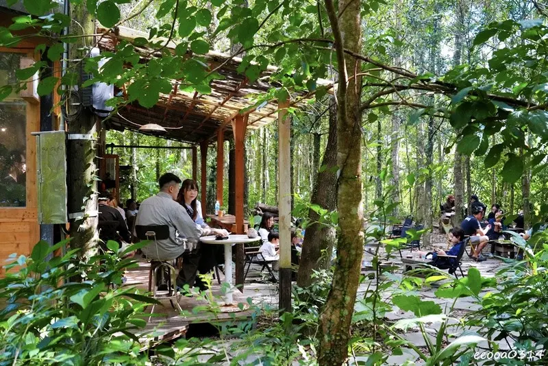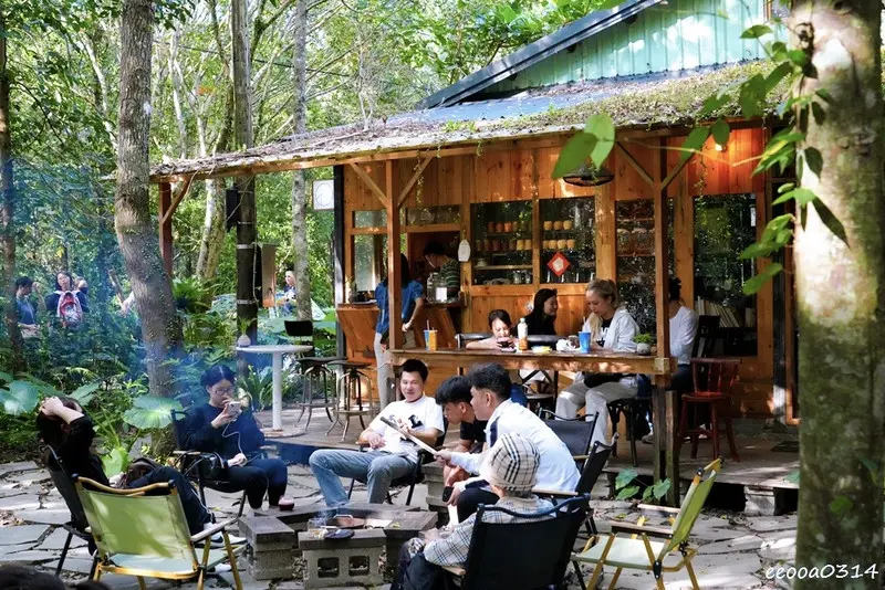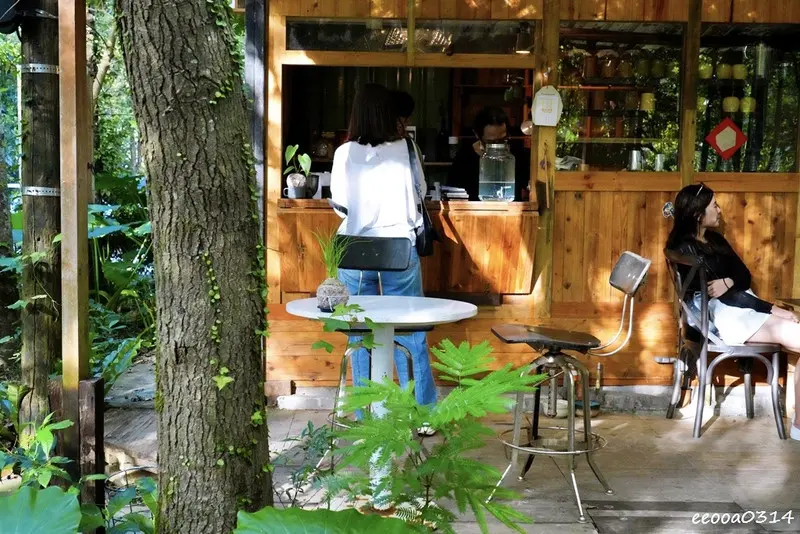 咖啡吧就藏在樹林裡,沒有醒目的招牌,反而多了一種秘境感。