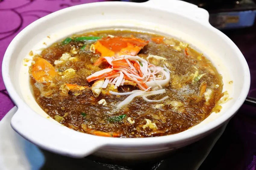 粉絲充分吸收紅蟳的鮮甜與蟹黃的濃郁滋味醬汁,讓人忍不住一口接一口