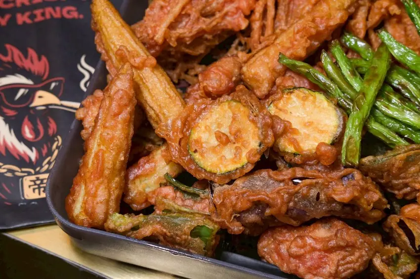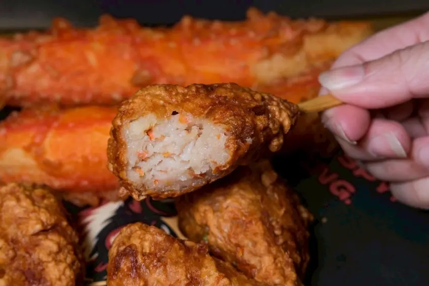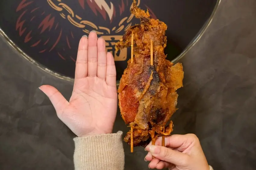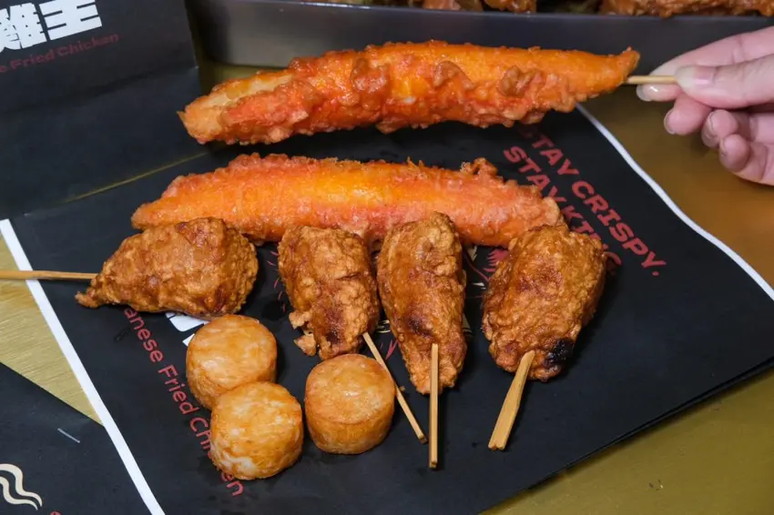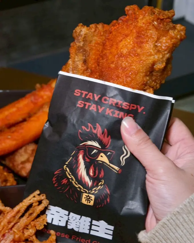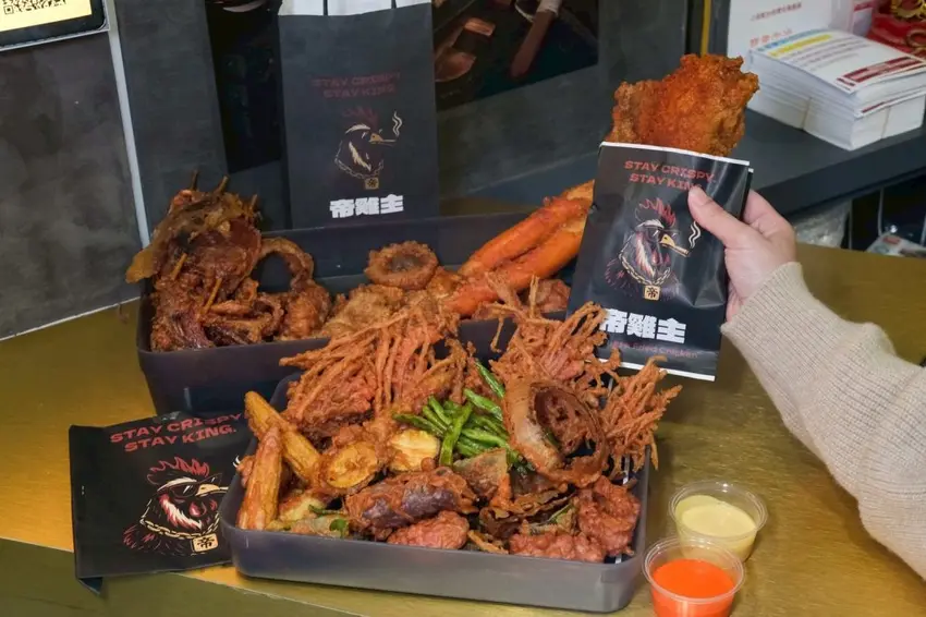近期吃過最有創意的炸物就是這家,台中逢甲夜市新開幕的【帝雞主炸物專賣店】,不只店名很有梗,聯賣的品項也是有在酷,除了招牌咬下會爆汁的腿排,竟然還有比臉大炸魷魚、超粗帝王蟹肉棒、沾醬炸雞等,就像是用放大鏡照過一樣!