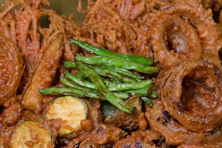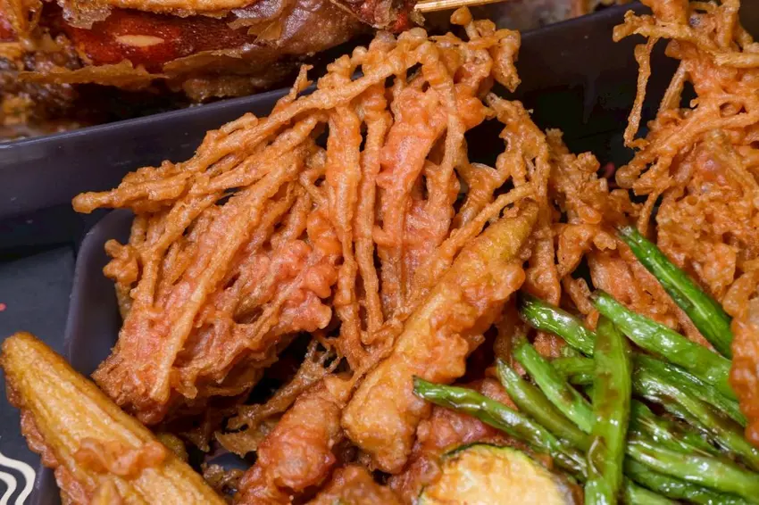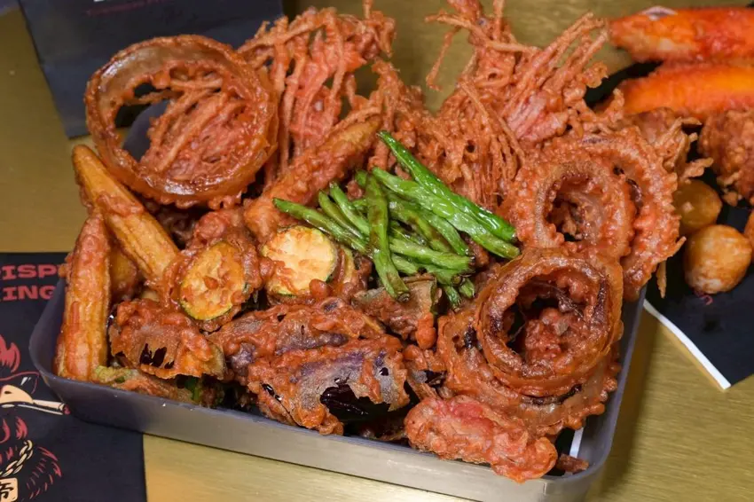 ▼浮誇大的綜合蔬菜拼盤,內含櫛瓜、金針菇、茄子、四季豆、青椒、玉米筍和洋蔥圈,不得不說真的超豐富,而且保有蔬菜水分,不會炸的乾乾的!