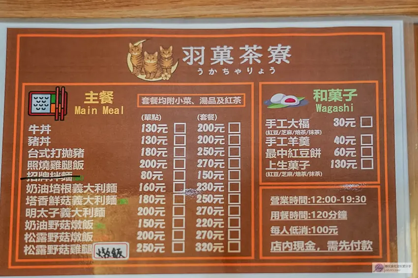 和菓子義大利麵都有,低消百元親民