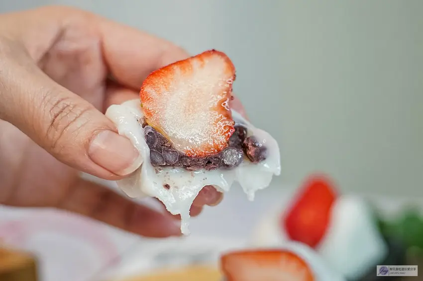 皮軟紅豆帶顆粒,草莓爆汁酸甜搭