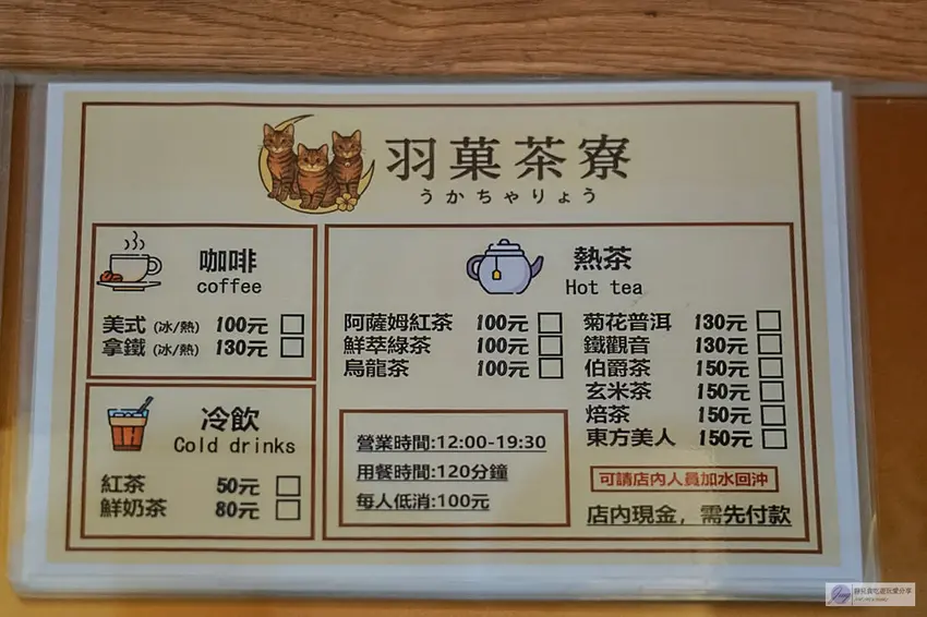 備註資訊:每人低消100元、用餐限時120分鐘
