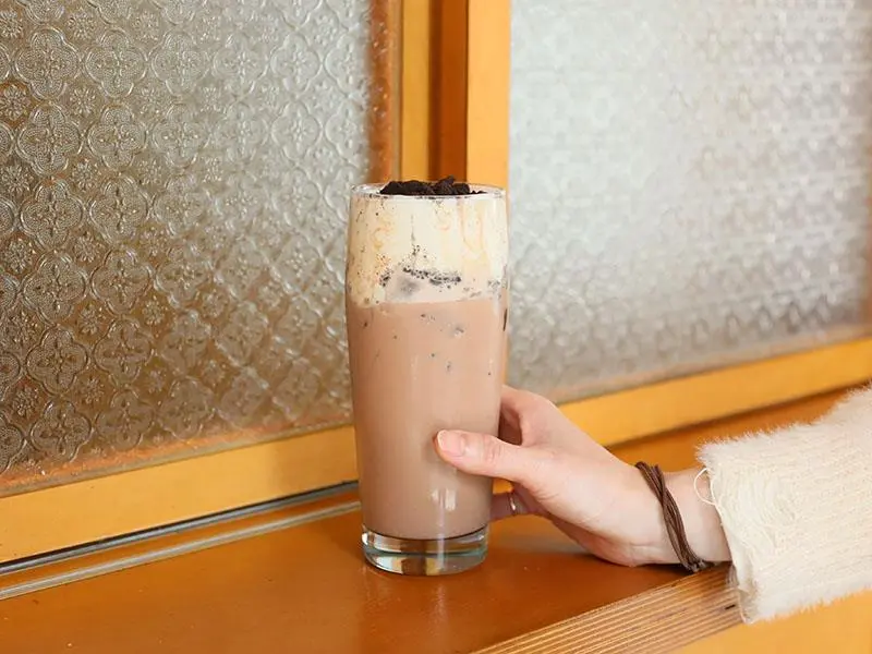 恐龍美祿飲,撒滿碎片起司奶蓋濃。