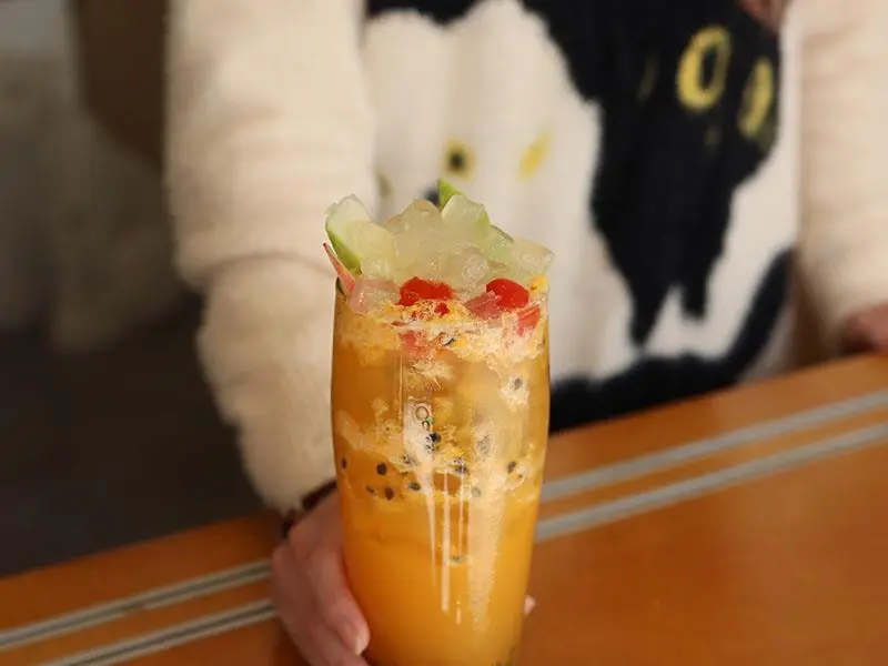 如果你想喝點清爽的但又擔心睡不著,這款「檸玫荔(寒天)」是無咖啡因的最佳選擇。將檸檬的酸、玫瑰的優雅花香與荔枝的甜美完美融合,喝起來酸甜適中,不會過於刺激。裡面還加入了寒天晶球,增添了咀嚼的樂趣與飽足感。整杯飲料充滿了清新的花果香氣,喝完後口齒留香,非常適合想要解渴、放鬆心情,又不希望有負擔的午後時光。