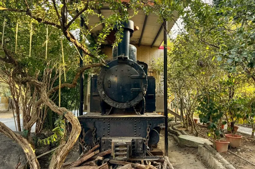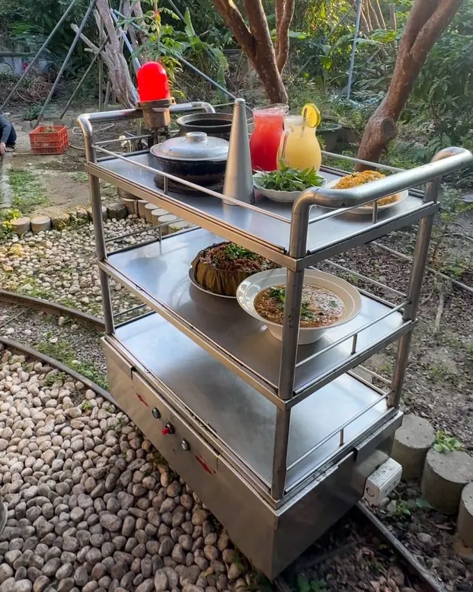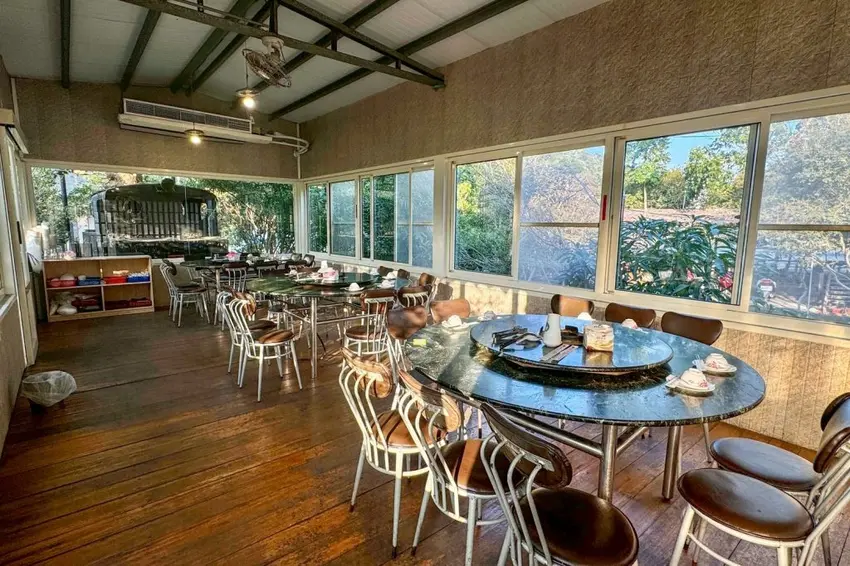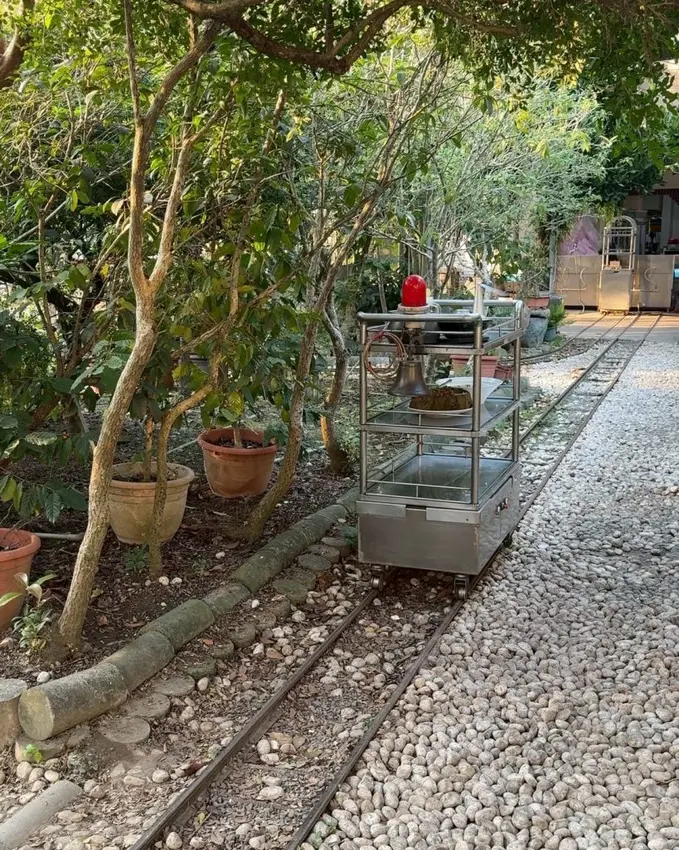 ▼【綠野山莊】這裡有獨特的軌道送餐和百年火車頭,多個戶外品茗亭以及小孩放電遊憩區,讓用餐時光多了趣味性~
