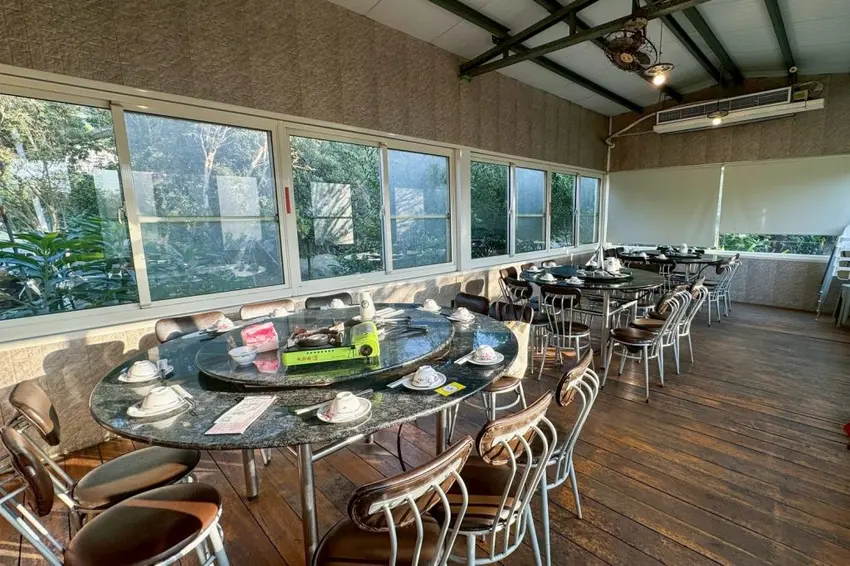 ▼【綠野山莊】擁有近百坪的用餐空間,從開放式到獨立包廂都有,充滿古色古香的台灣風情,無論是家庭聚餐或是公司活動都很適合~