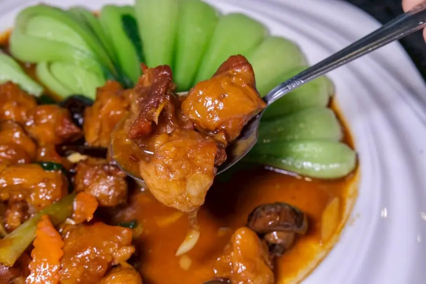 ▼讓人相當好奇的紅燒虎掌,其實就是紅燒豬腳肉,醬汁濃郁,入口即化,保留瘦肉與豬腳皮,咬起來多了豬皮的Q彈感!