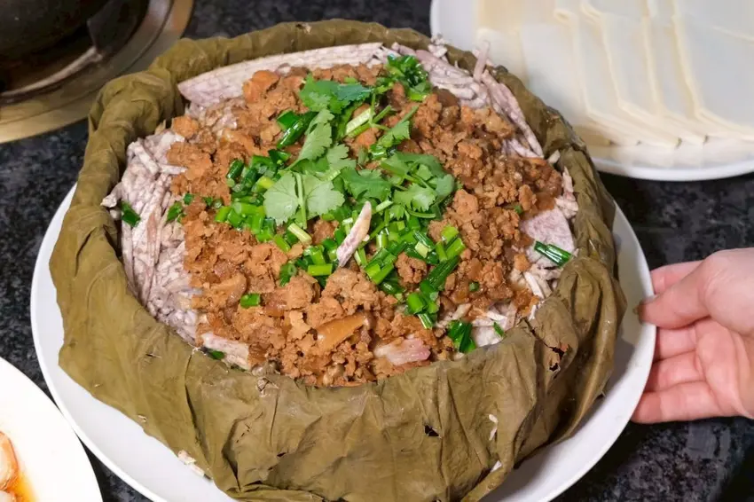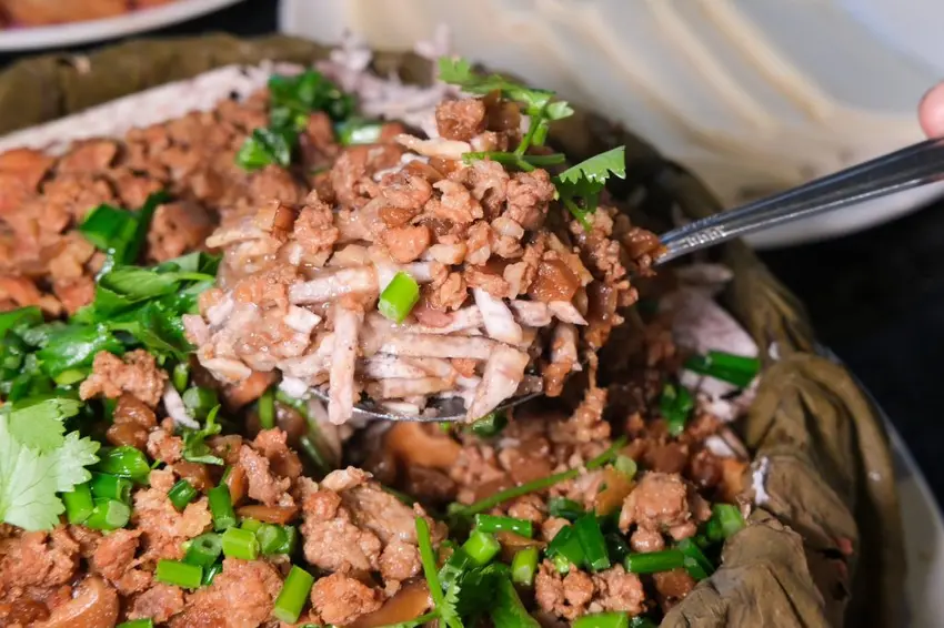 ▼芋頭絲更是誇張到不行!肉燥下是一滿滿的芋頭絲,大口塞下整個超爽,而且是以荷葉包覆後清蒸,吃起來有淡淡的荷葉香,非常特別~