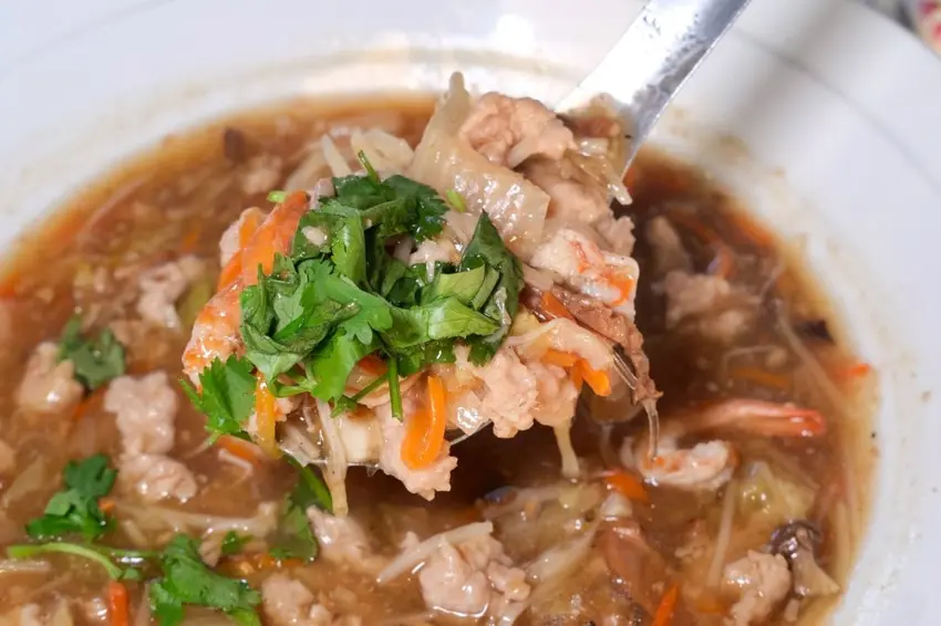 ▼澎湃指數破表的紅燒魚翅羹,裏頭撈得到滿滿滿的料, 小干貝、蝦、肉塊等, 紅燒湯頭帶有沙茶香氣,濃郁程度更是剛剛好,不會讓人膩口!