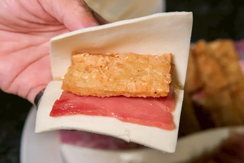 ▼非常講究的功夫菜蜜汁火腿,鹹甜火腿加上很酥脆的四方餅,口感豐富充滿層次 !