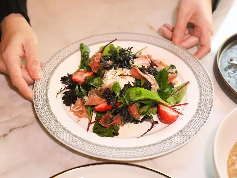 竹北「Vinyl Y 西餐創意料理」隱藏著二十年主廚的細膩功夫,必點耗費五天工序的松露烤雞與布拉塔起司沙拉。