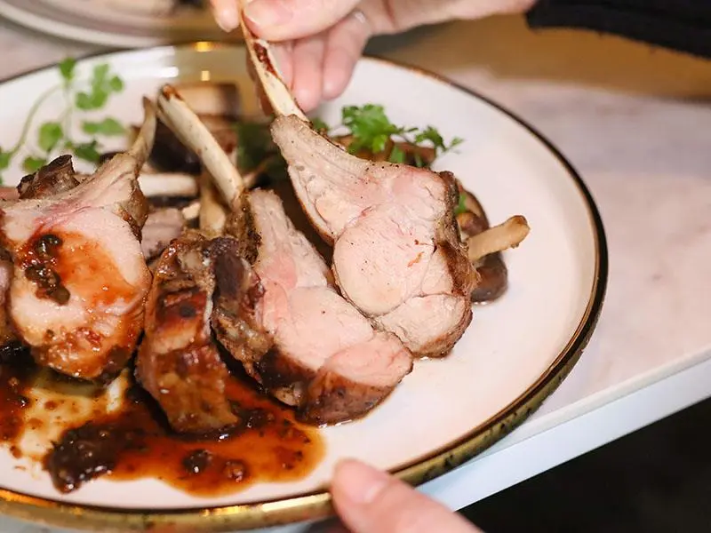 喜歡品嚐純粹肉香與原味的朋友,這道「小牛肋排」絕對是你的首選。主廚刻意捨棄了時下流行的舒肥法,堅持採用先煎後烤的傳統工序,為的就是完整保留肉排本身的纖維感與彈性。切開後肉質呈現誘人的色澤,咬下去口感Q彈中帶點微韌,越嚼越能感受到牛肉的鮮甜。搭配每天變化調配的專屬沾醬(這次品嚐到的是綠胡椒醬),胡椒的微辛香氣將肉香再度往上提升了一個層次,是一道充滿個性的主餐。