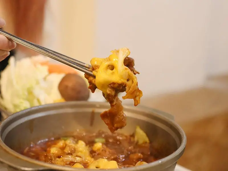 韓朝起司辣炒鍋,濃郁牽絲。