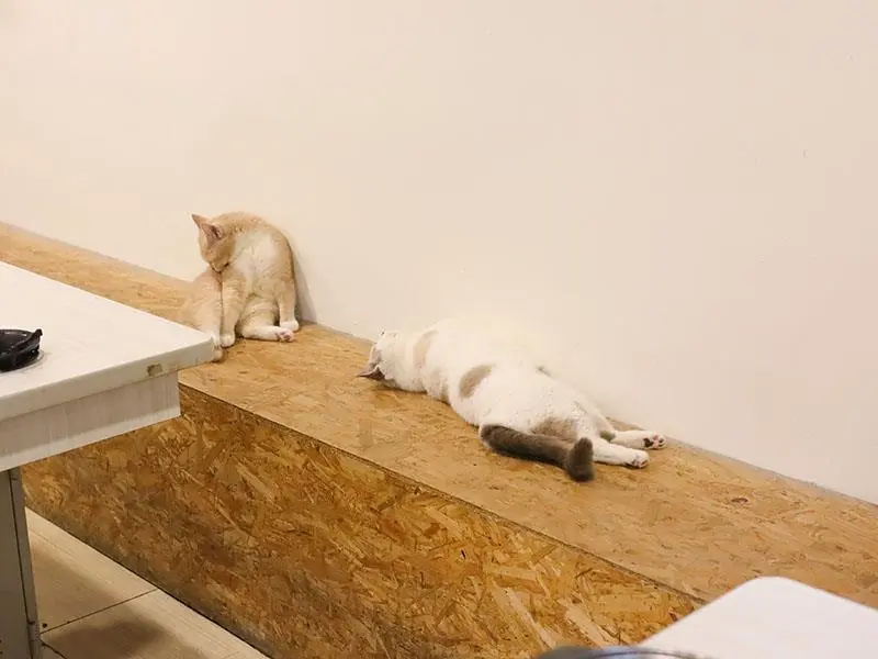 港式甜點收尾,四隻店貓伴。