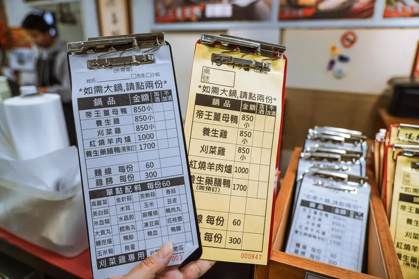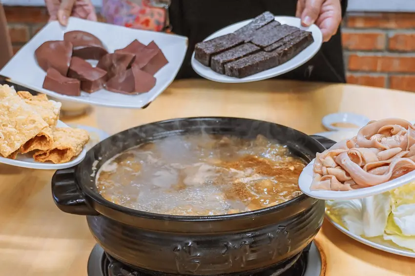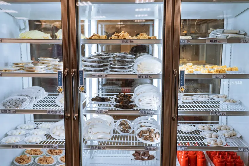 店內的點餐方式相當現代化,可以直接掃描桌上的行動條碼點餐,而且上菜速度超級快,才剛入座沒多久,熱騰騰的薑母鴨就已經端上桌了。火鍋配料的部分則是採自助式領取,走到冰箱前想吃什麼就自己拿,通通均一價只要六十元,價格非常透明實在。冰箱上方還貼心標示了各種鍋底適合的配菜建議,除了必備的高麗菜、金針菇、鴨血與凍豆腐之外,這裡竟然還有提供外面少見的麵疙瘩,口感Q彈有嚼勁,絕對是來店必拿的獨特配料。拿滿一整桌豐富的食材下鍋熬煮,視覺與味覺都超級滿足。