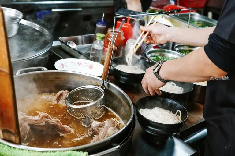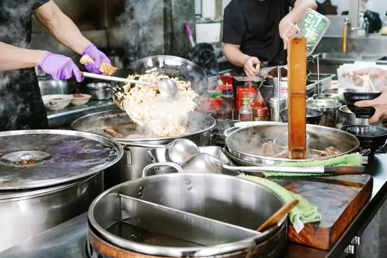這間深耕中壢一甲子的傳奇老店,地理位置相當便利,距離中壢夜市僅需步行約十二分鐘,一出捷運站更是一分鐘即可抵達。店面分為一、二樓座位區,平日十一點剛開門就湧入滿滿的訂單與人潮,受歡迎的程度可見一斑。一樓設有半開放式的廚房,宛如搖滾區般可以近距離觀賞師傅們大火快炒的俐落身手。看著那真材實料的牛骨湯頭與翻騰的鐵鍋,鑊氣十足的畫面絕對讓人在等待時就先食慾大開,想吃務必提早打電話訂位。