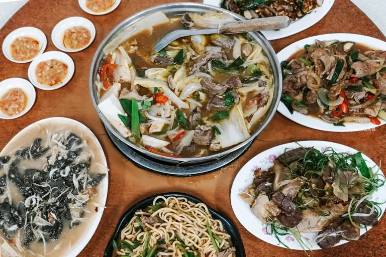 主食部分點上一盤「牛肉炒麵」就能吃得非常滿足。同樣是大火快炒逼出陣陣沙茶香氣與鑊氣,麵條吸附了滿滿的醬汁,而且牛肉片給得相當大器,完全不小氣。這次七個人點了滿滿一桌的招牌綜合火鍋與多道特色快炒,結帳時大約只需兩千元,平均下來一個人三百元有找。這樣份量十足且用料實在的全牛大餐,性價比真的高得不可思議。下次若有機會來到桃園中壢,這間歷史悠久的老字號全牛料理,絕對值得你特地空下胃來好好品嚐。