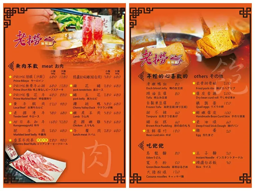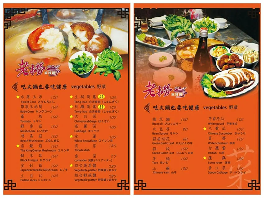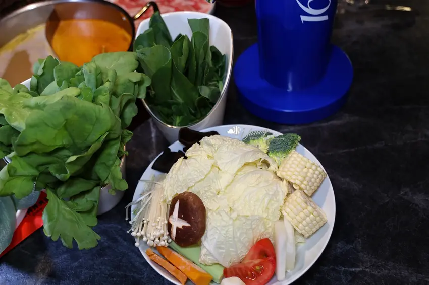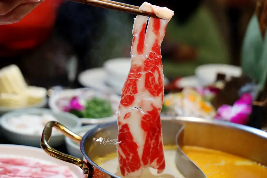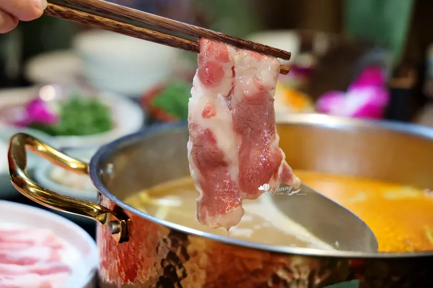 有了極致的湯頭,當然少不了頂級的肉品來搭配。老撈的招牌「黃牛胸肉」絕對必點,這部位最迷人之處在於那層看似肥油、實則口感脆彈的白色組織。無論是在清湯中涮煮品嚐濃郁牛油香,或是在叻沙湯底中讓筋膜吸附香料,都能帶來顛覆想像的爽脆口感。另外「梅花豬肉」的油脂分布均勻,口感Q彈嫩口不乾柴。將瘦肉部分吸附叻沙湯頭的濃厚香料風味,油脂則巧妙平衡了微辣感,兩款肉品在特色湯底的加持下,都展現了令人難以抗拒的絕佳美味。