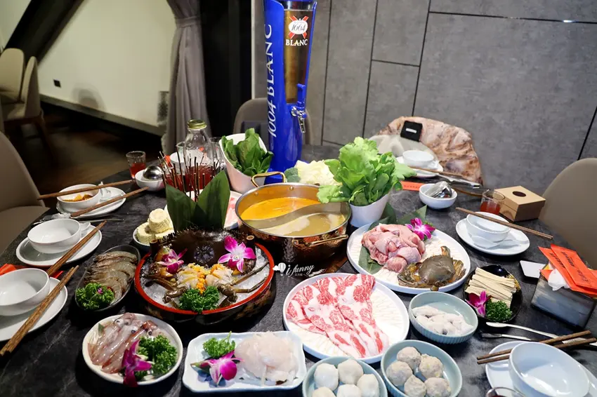 海鮮與火鍋料的表現同樣精彩。「鮮甜小卷」與微辣的叻沙湯底是天作之合,辛香料不僅帶出了小卷天然的鮮甜,其豐富的海味更提升了湯底的鮮度層次。招牌的「老撈滑魚」肉質極其細緻滑溜,入口即化的口感深受饕客喜愛。若想讓湯頭的蟹味更加極致濃厚,強烈推薦再加點一隻活體紅蟳入鍋熬煮。此外,飽滿彈牙且肉質鮮甜的「無毒蝦」,也是海鮮控不能錯過的必點品項,讓整鍋海陸饗宴的鮮度直達頂峰。