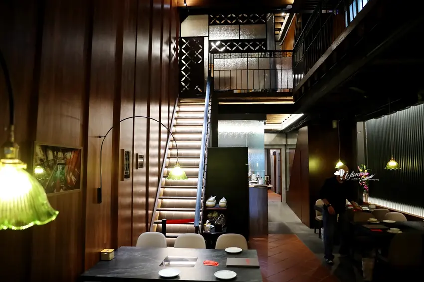 走進老撈麻辣鍋大稻埕店,立刻會被那股歷史的光華所震懾。店家保留了老宅原有的樑柱結構與挑高設計,搭配精心配置的燈光與木質桌椅,營造出極具質感的用餐氛圍。一樓以四人桌為主,拾級而上來到二樓,舊時的日式格子窗框與木質窗櫺,在光影交錯下散發出優雅的復古氣息。三樓則設有適合多人聚餐的圓桌包廂,可依需求彈性調整布簾。利用鋼樑支撐起百年建築的巧思,完美詮釋了「老宅新生」的特色,隨處一個角落都美得令人著迷,讓人忍不住多按幾次快門。