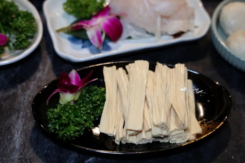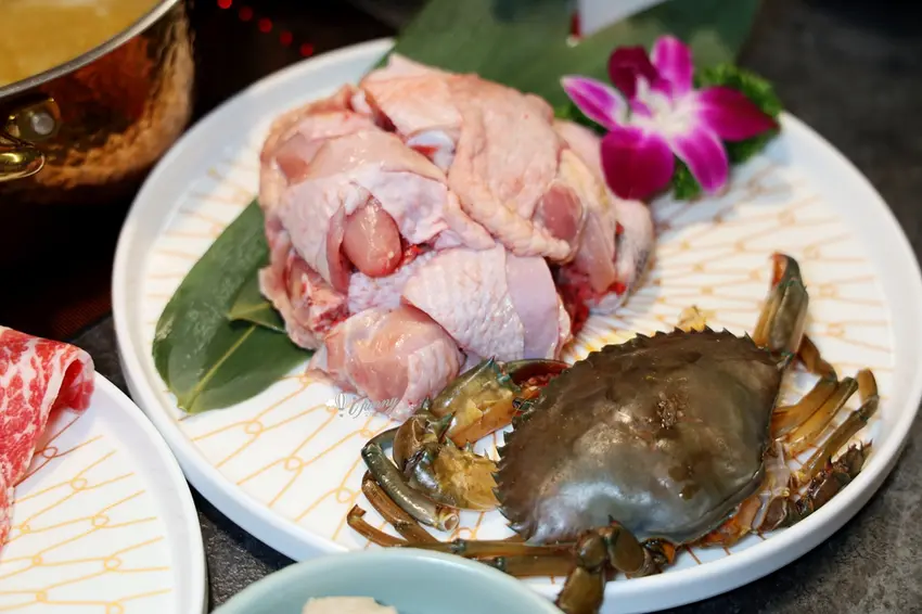 火鍋的配角丸餃類也不容馬虎。「芹菜丸」以彈牙的魚漿包裹著細碎的新鮮芹菜末,咬下時肉汁的鮮甜與芹菜的爽脆交織,口感非常清爽。「三記魚餃」Q彈的麵皮能完美吸附濃郁的叻沙辛香與蟹味鮮甜,風味堪稱一絕。而「生鮮腐竹」最大的特色在於非油炸製程,不僅豆香濃郁,還能快速吸收鍋中精華,口感滑嫩順口。在百年歷史建築裡,與親友圍繞著這鍋熱氣騰騰、滋味豐富的廣東雞煲蟹,絕對是大稻埕年貨大街走春、尾牙春酒最完美的聚餐選擇。