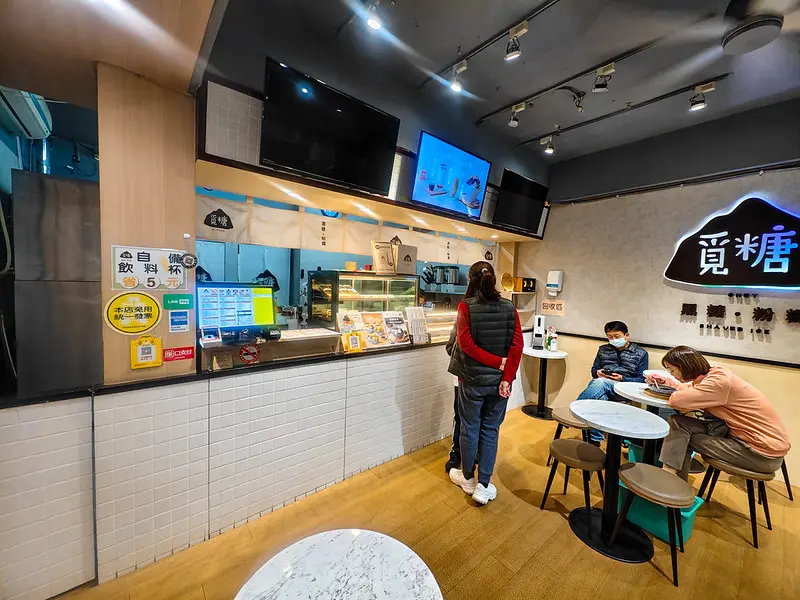 覓糖興安店座落於熱鬧的興安街中段,這裡中午時段總是擠滿了覓食的上班族。從捷運南京復興站或中山國中站步行過來大約只需八到十分鐘,交通相當便利。與一般地板黏膩、燈光昏暗的傳統剉冰店截然不同,這裡的裝潢走的是純白文青風格。店內燈光打得非常明亮,路過時甚至會誤以為是一間質感的連鎖飲料店。雖然內用座位大約只有十來個,空間不算太大,但整體環境維持得十分乾淨,最重要的是夏天有強放的冷氣,讓吃冰這件事變得更加享受。