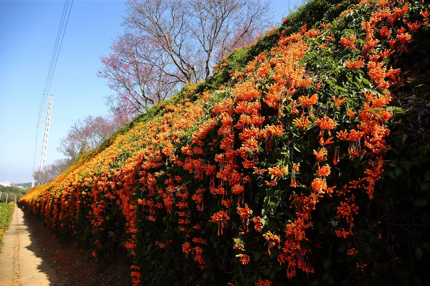 炮仗花每年1月至3月間帶來令人驚豔的橘黃色視覺盛宴