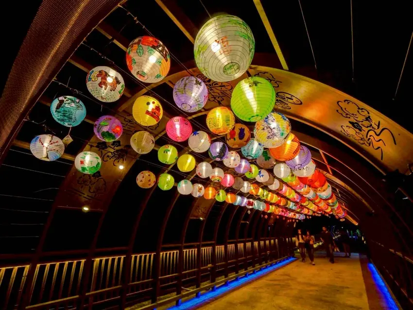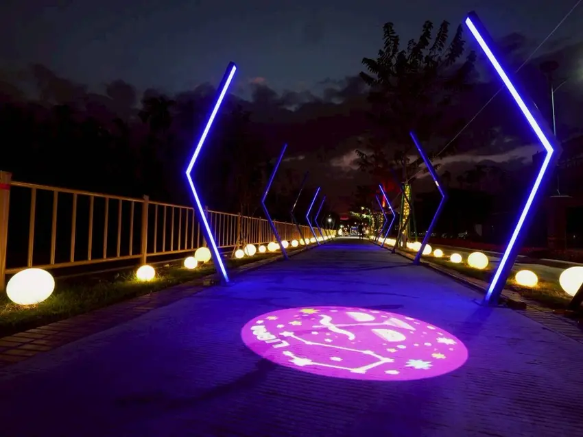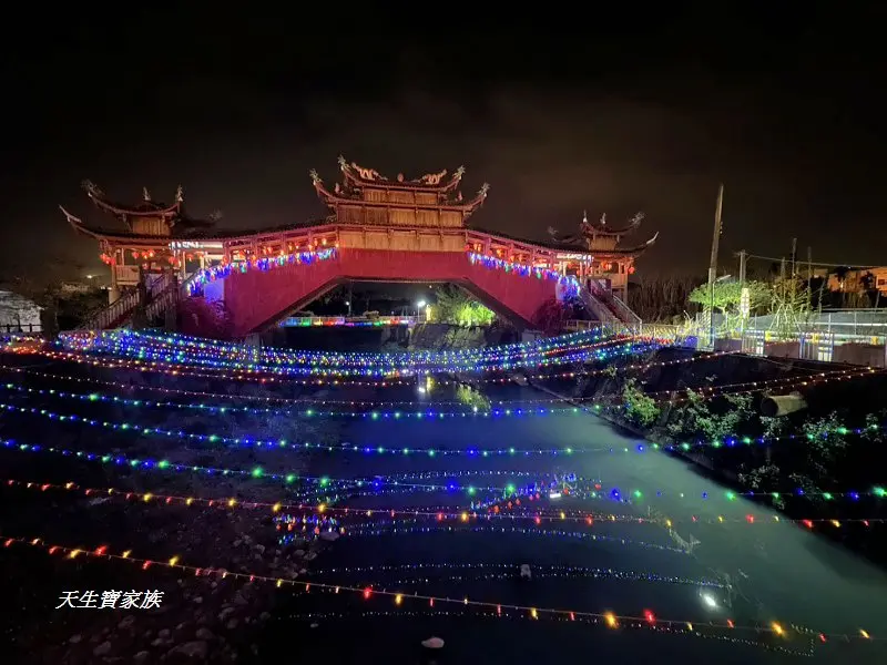 泰順廊橋這一區真的美到會停下腳步。整片LED燈海鋪滿地面,閃耀得像星光墜落人間;古樸的廊橋輪廓,在燈光映襯下更顯溫柔。傳統與現代交織在一起,畫面怎麼拍都很有氛圍。