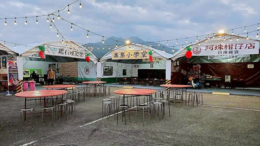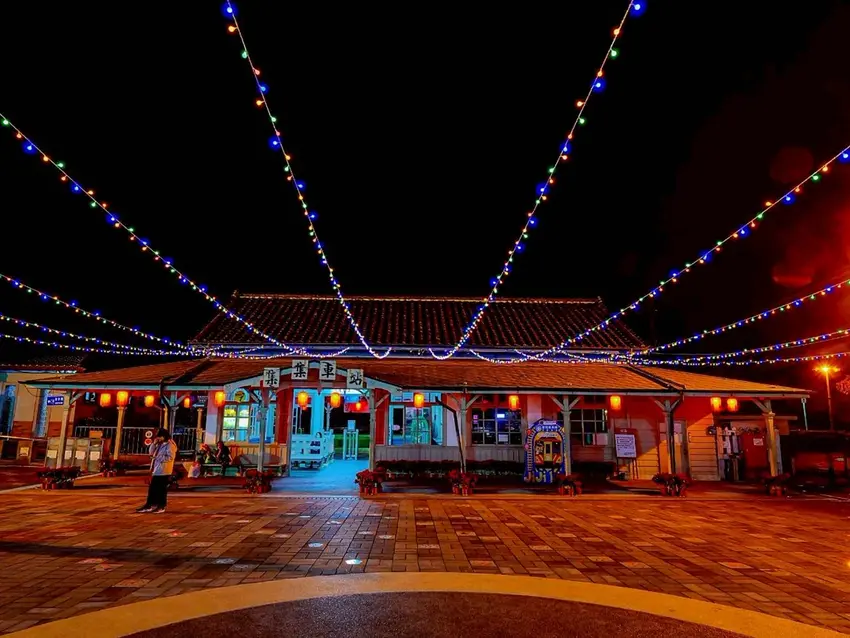 光影聚車站・集集亮起來,火車站前廣場到了晚上,真的會讓人驚呼一聲「好美!」整片燈串從高空垂掛而下,像銀河瀑布傾瀉而落,和古樸的鐵道場景相互映襯,多了一種復古又浪漫的氛圍。抬頭是滿天星光,低頭則是另一個驚喜。