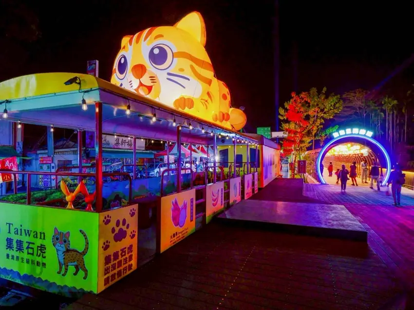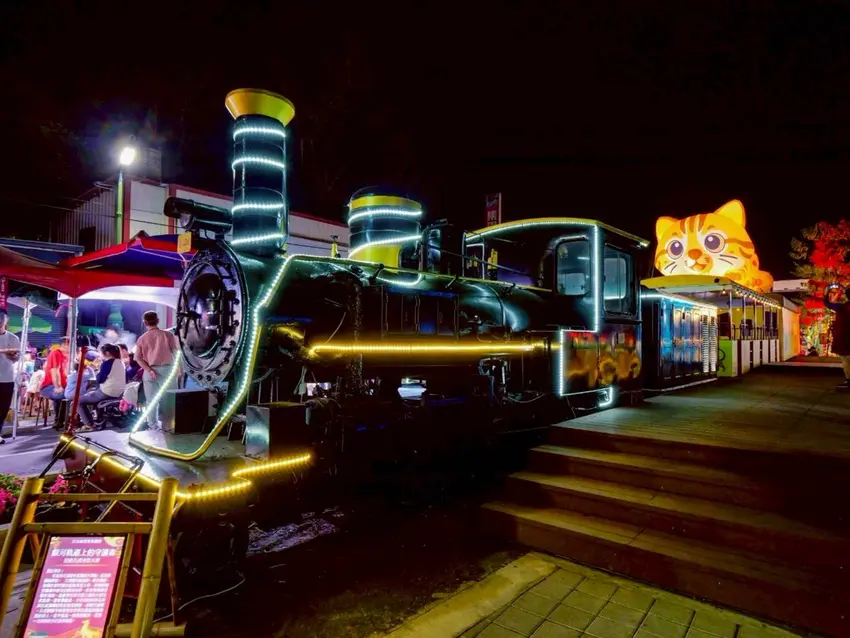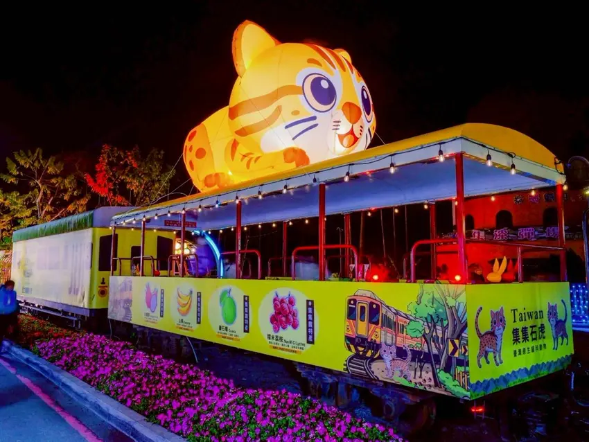 充滿未來感的銀河蒸氣火車,彷彿載著大家穿梭時空,從集集的鐵道記憶駛向嶄新的未來。而超萌石虎則化身最佳代言人,不只可愛吸睛,更象徵在地生態與守護土地的意義。更貼心的是,每一座燈飾旁都設有設計理念說明牌,讓遊客在拍照打卡之餘,也能了解創作背後的故事與象徵意義。