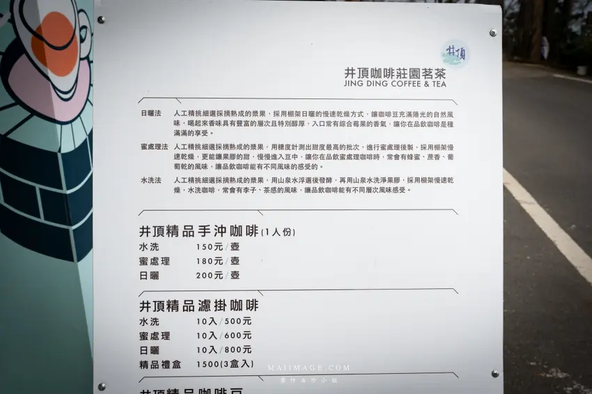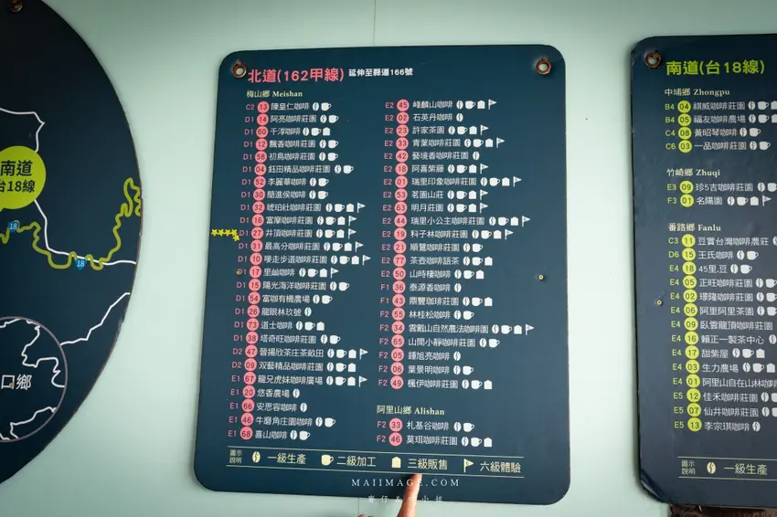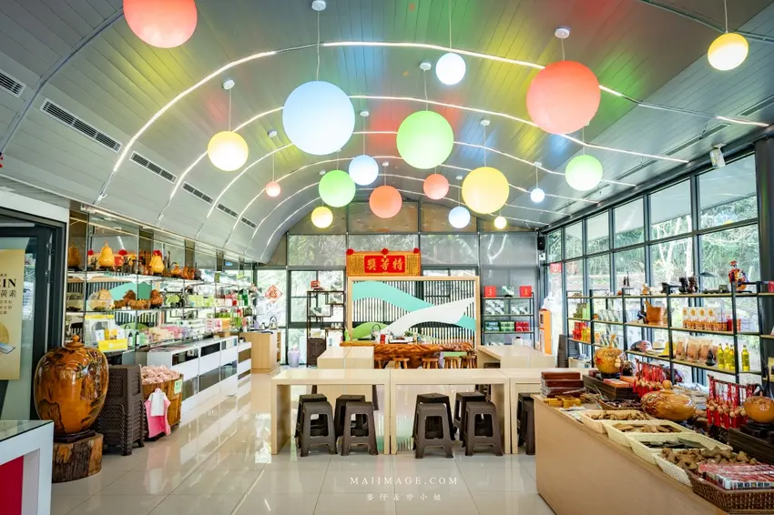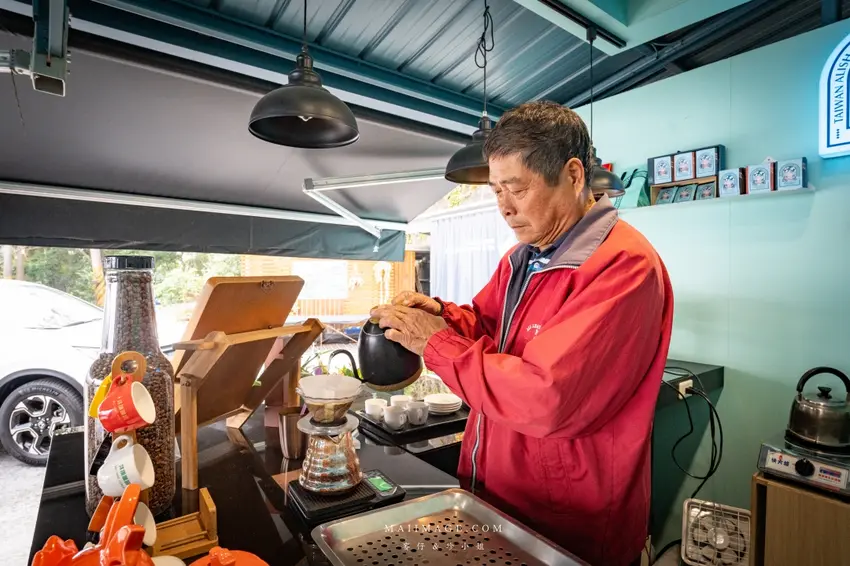 行程尾聲來到梅山鄉龍眼村的「井頂咖啡莊園茗茶」。該地海拔約一千公尺,終年雲霧繚繞,得天獨厚的氣候孕育出風味層次豐富的高品質咖啡豆。莊園主人熱情好客,店內裝潢時尚且充滿質感,提供絕佳的品茗與品飲空間。最特別的是,這裡提供無電力的咖啡烘豆DIY體驗,讓遊客親身參與甩豆、吹豆脫殼,並使用即將失傳的竹編環保烘爐進行炭火焙豆。細細品味自家種植、日曬、烘焙的精品咖啡,搭配窗外一望無際的山景,為旅程留下深刻回憶。