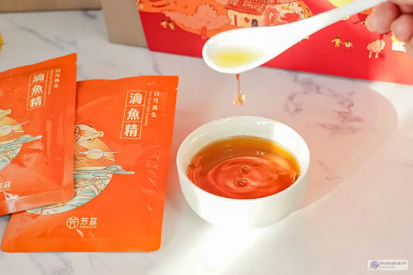 市面上的滴魚精常因魚腥味讓人卻步,但芳茲的「日月養生滴魚精」卻完美克服了這個問題。產品精選具備合格產銷履歷的虱目魚場,堅持使用半海水養殖以確保魚肉鮮甜無土味。在滴煉前,不僅確認魚隻通過重金屬與動物用藥檢測,更細心地去除魚肚與內臟等易產生腥味的部位。特別的是,配方中獨家添加了深海魚軟骨素,讓整體營養價值再次升級。滴魚精的湯色呈現透亮的淺茶褐色,質地較為輕盈,喝起來宛如慢火熬煮的清爽魚湯,完全沒有令人害怕的腥味,對於病後調養、銀髮長輩或發育期的孩子,都是非常適合的全方位補給。