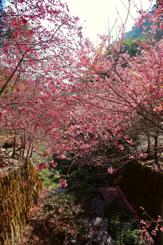夏蝶冬櫻山谷園地櫻花秘境原本是座落於溪谷中是個小巧精緻的隱密露營區,因為櫻花紅粉佳人和八重櫻開的太美了,園主開放給一般遊客入園賞花,每位只要清潔費100元