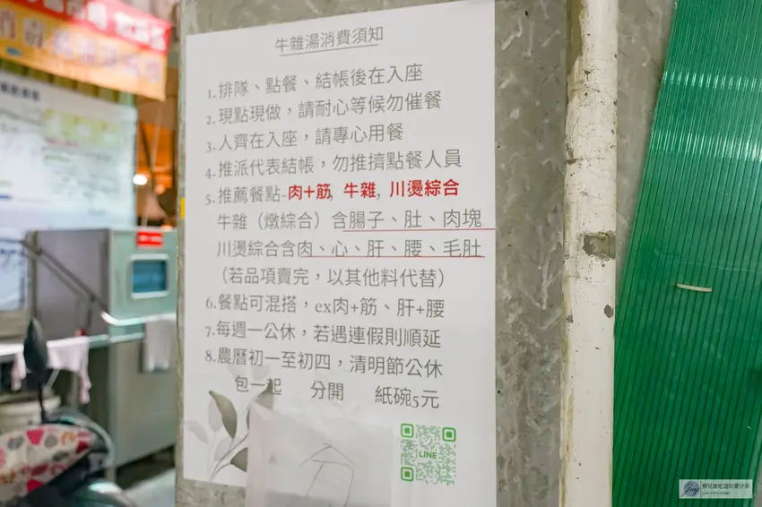 由於名氣響亮且座位有限,攤位前從清晨便會擠滿等候的人潮。為了維持用餐品質與效率,店家訂定了明確的排隊規則。顧客需依序排隊、點餐並完成結帳後,由工作人員統一安排入座,且入座後不得隨意更換座位。由於餐點皆為現點現做,建議在排隊等候時便先決定好想品嚐的品項,以加快整體流程。儘管人潮眾多,但攤位的翻桌率相當快,只要耐心稍作等候便能順利入座。想品嚐這碗百年傳承的極致美味,務必安排在中午以前前往,以免提早完售而向隅。
