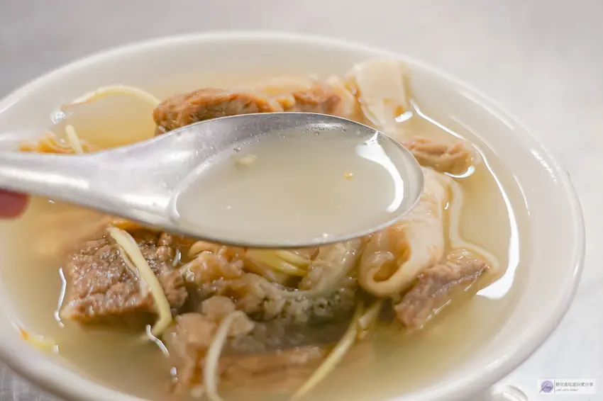 店家每日選用新鮮溫體牛,確保食材的最佳品質。菜單品項相當豐富,涵蓋了牛肉、牛心、牛肝、牛腰、毛肚與牛筋等多種部位,價格約落在190元至240元之間。初次造訪強烈推薦點上一碗「牛雜綜合湯」,裡頭豪邁地放入牛腸、牛肚與牛肉等豐富配料,滿滿一碗幾乎看不到清湯,份量極具誠意。各個部位的火候掌控得宜,吃起來不僅沒有令人害怕的內臟腥味,口感更是囊括了軟嫩、Q彈與微帶咬勁等多層次變化,完全不會過於強韌難咬,展現了老店處理內臟的深厚功力。