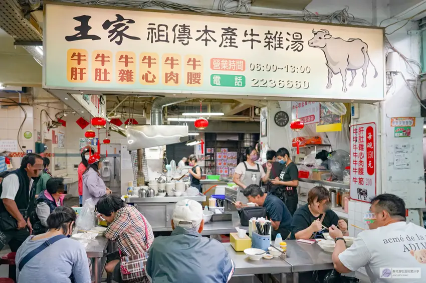 嘉義東市場百年老店「王家祖傳本產牛雜湯」,傳承四代在地超人氣。主打新鮮溫體牛與霸氣鐵鍋熬煮。