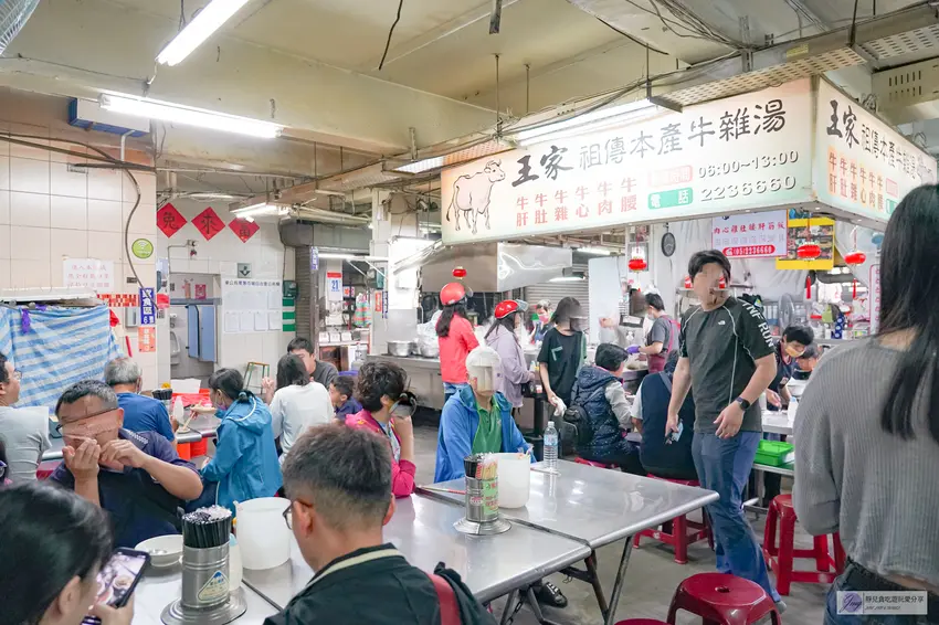王家祖傳本產牛雜湯的地理位置隱身於充滿生活氣息的東公有零售市場內部。由於周邊早晨為熱鬧的市集,車輛無法直接駛入,建議開車前往的旅客可將車輛停放於附近的立體停車場後,再步行進入市場尋找。在搜尋地圖導航時,務必輸入完整的店名以免因資訊誤差而迷失方向。走進市場,只要看到大排長龍的攤位,以及那口不斷冒著熱氣的霸氣大鐵鍋,便能確認已抵達目的地。這口大鍋裡翻騰著當日屠宰直送的滿滿牛肉大雜燴,將所有精華濃縮其中,視覺與嗅覺的雙重震撼令人食指大動。