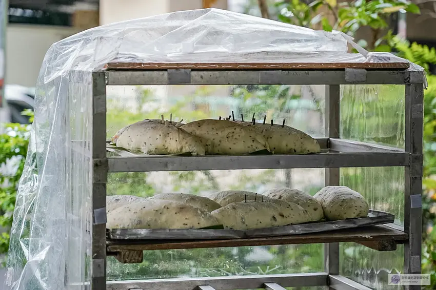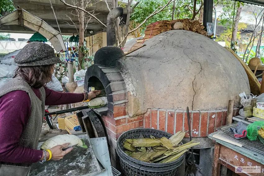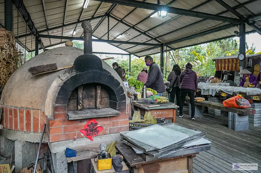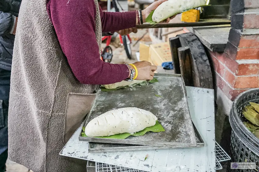 走進半開放式的鐵皮屋廠區,映入眼簾的便是由經營者夫婦親手打造的碩大手工土窯。這裡的烘焙過程完全遵循傳統工法,堅持選用優質的龍眼木作為單一燃料進行柴燒。在窯爐高溫的淬鍊下,柴火散發出的天然燻香會均勻地滲透進每一顆麵包之中,成就了一般現代電烤箱無法複製的獨特風味。看著工作人員熟練地將麵團切塊並俐落地送入高溫土窯中,默契十足的忙碌身影,完美展現了職人對手工烘焙的純粹堅持與熱情。