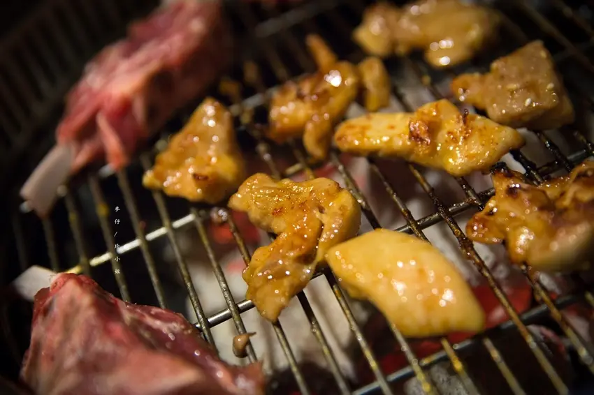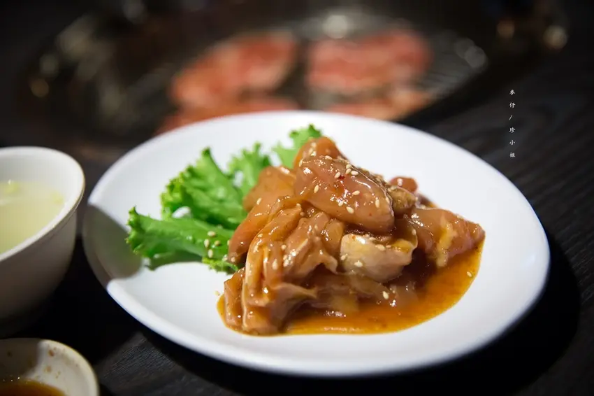對於喜愛豐富油脂香氣的顧客,「五花牛肉」與「上肥牛肉」皆是極佳的選擇。特別是選用 Prime 等級的上肥牛肉,大面積的肉片只需在烤網上稍微炙烤,便能逼出迷人的油脂香氣,搭配白飯一同享用,瞬間有種奢華燒肉飯的滿足感。若同行者有不吃牛豬的需求,以特製味噌醬料醃漬的「去骨雞腿肉」同樣表現出色。雞腿肉本身極為軟嫩,濃郁的味噌香氣經過炭火烘烤後更顯醇厚入味,極度下飯。從精準的修肉工藝到細緻的桌邊服務,哈肉燒的每一處細節都展現了專業日式燒肉的最高水準。