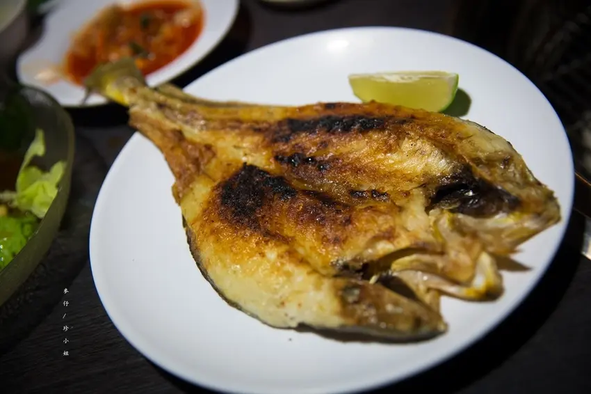 除了優質的各式肉品,哈肉燒在海鮮與內臟類的處理與代烤服務上同樣展現了極高的專業度。若點選如香魚或北海道花魚等難以掌控火候的海鮮食材,店家在忙碌之餘也會盡可能提供貼心的桌邊代烤服務,確保每一尾魚都能烤出外皮酥脆、肉質細緻的最佳狀態。而喜愛下酒菜的饕客,絕對不能錯過這裡的「大腸」。經過專業的手法炙烤,大腸內的油脂被完美逼出,外表呈現宛如餅乾般的極致酥脆口感,鹹香夠味的表現非常適合搭配生啤酒或清酒,是店內極受歡迎的人氣下酒名物。